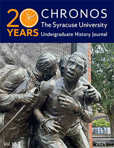 Chronos is the undergraduate history journal of Syracuse University. Established in 2005, Chronos provides a platform for undergraduate students to publish their research and contribute to the wider body of historical scholarship. We publish not just for history students, but for the entire Syracuse community. Chronos also organizes an annual academic conference comprising of undergraduate research presentations, and panel discussions between students and faculty.